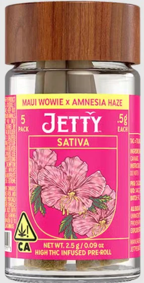 With Maui Wowie bringing the juicy lift and Amnesia Haze adding that zesty, creative tingle, this preroll hits like a wave of sunshine — perfect for losing track of time in the best way. We start with OCal Certified (comparable-to-organic) top-shelf bud, selected for its flavor and potency. An infusion of live rosin comes next, made in-house using just ice, water, heat, and pressure. The result is unique pairings that bring out intense flavors and effects from complementary flower and hash terpene profiles. It’s a full-spectrum, full-body high that delivers. Top-shelf bud. Curated flower and oil pairings. Supercharged Potency. Find your flavor with Jetty Pre-Rolls.