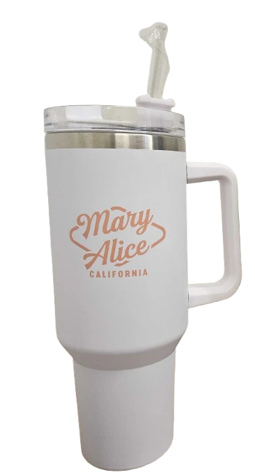 Sip your Feel Good with our Mary Alice Mug. Double Wall Vacuum. Stainless Steel. Keep Drinks Hot up to 12 Hours and Cold up to 30 Hours. Reusable Straw.