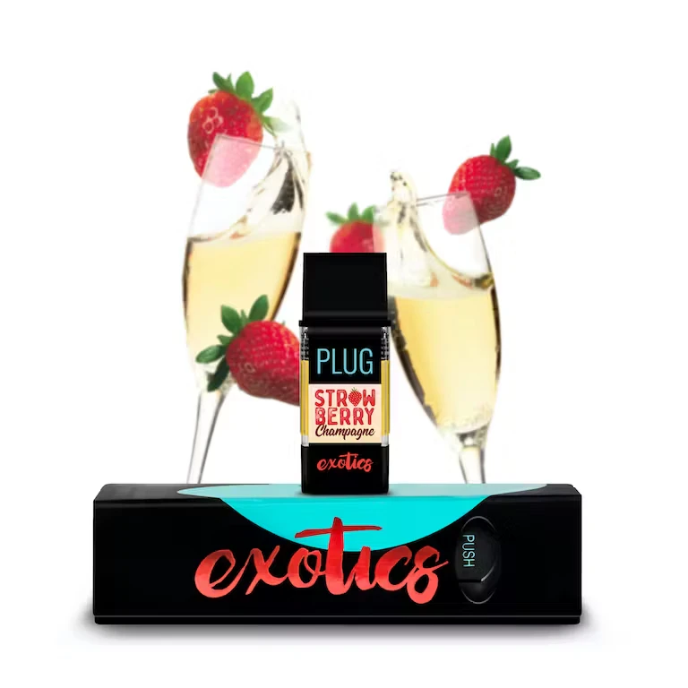 You'll want to sneak this pen in for brunch. PLUGplay™ offers their PLUG™ EXOTICS: Strawberry Champagne. This Hybrid vape oil has a stellar strawberry aromatics and a crisp, clean flavor profile. The effects are euphoric and invigorating, leaving users ready to PLUGplay™.