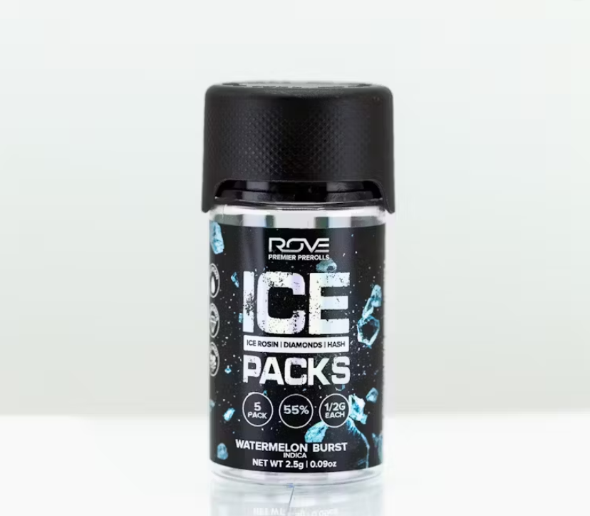 Rove Ice Packs, the world’s first triple-infused preroll. Made with premium-grade flower fully-infused with THCA diamonds and solventless ice hash rosin, they're expertly rolled, then coated with more ice hash. Super smooth and ultra potent, Rove Ice Packs test at over 50% THC. Welcome to the next evolution of prerolls.